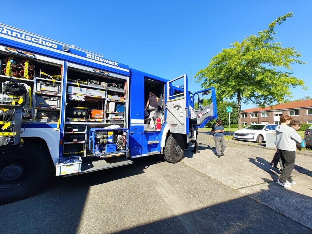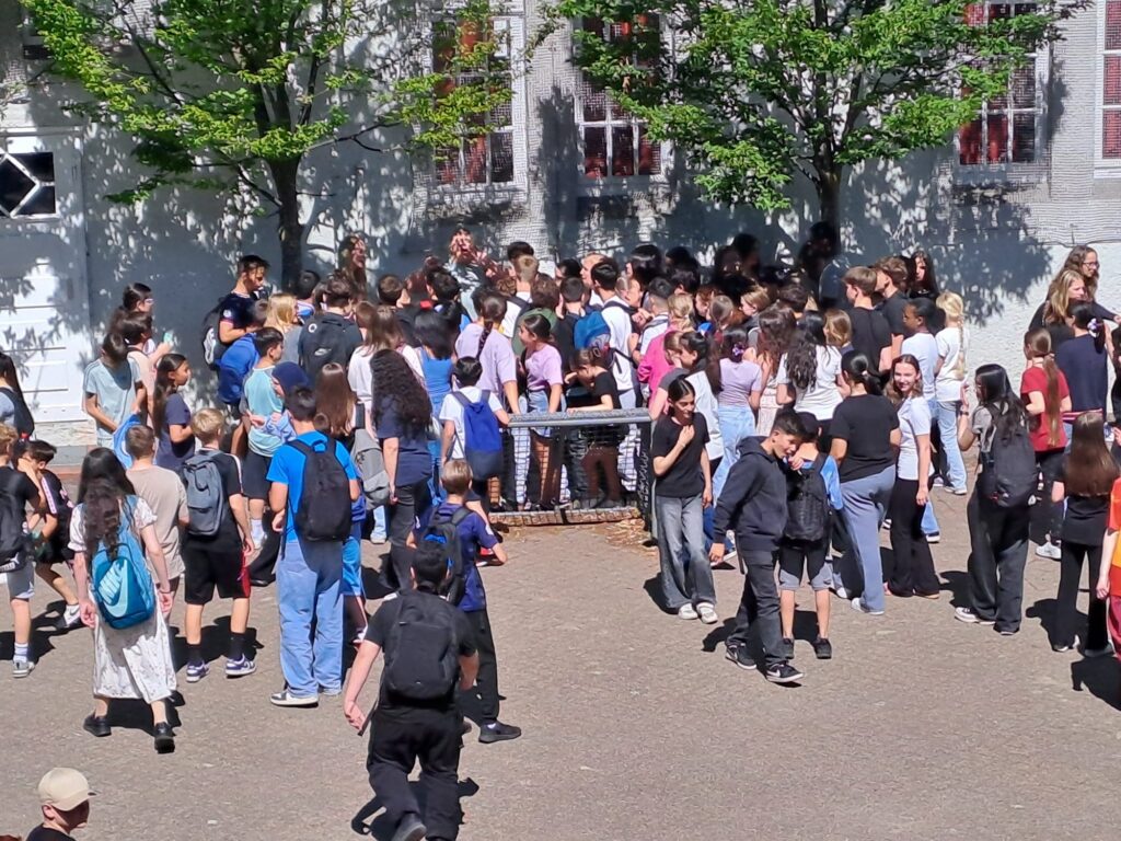 Das letzte Schuljahr haben wir mit einer Projektwoche zum Thema „Wir“ ausklingen lassen.Vom 25.06. – 01.07.2025 nahmen alle Schülerinnen und Schüler an täglich wechselnden Projekten in wechselnden Lerngruppen teil. Aus ca. 20 Projekten pro Tag haben alle Kinder nach eigenem Interesse für sie passende Projekte ausgewählt. Manche Aktionen fanden außerhalb des Schulgeländes statt, welche gemeinsam mit einer Lehrkraft fußläufig erreicht wurden. Den Schülerinnen und Schülern wurde ein vielfältiges Programm geboten, wie z.B. der Besuch des Wasserturms, ein Treffen mit Frau Gerlach, der Besuch der Feuerwehr und der Polizei, die Schule tanzt einen Flashmob, gesundes Essen, Sportspiele, Discgolf spielen, Besuch des Mathematikums, Kunstprojekte, kreativ mit Textilien und Farben sein, Sprachkurse usw. Am 1.7.2025 trafen sich alle Beteiligten für einen gemeinsamen Abschluss.