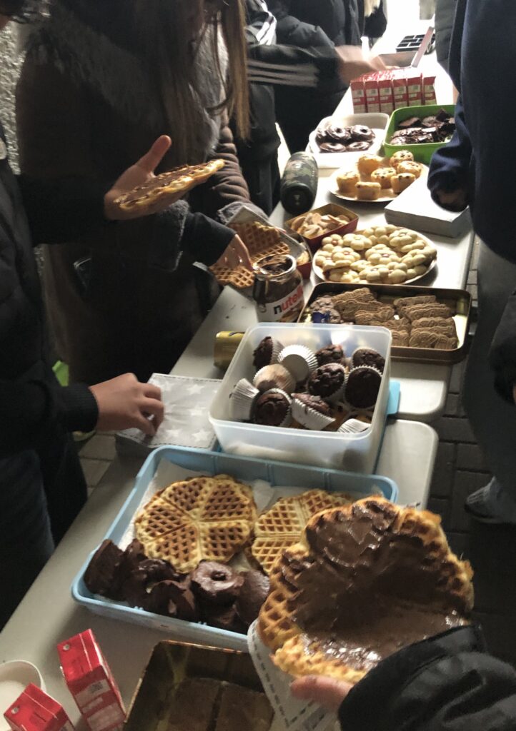Der Duft der selbst gebackenen Plätzchen und Waffeln der Klasse 9c sorgte am Donnerstag, den 4.12.2025, für süße Pausen. Der Andrang war groß und somit war am Ende auch der Verkauf ein voller Erfolg. Die 9c hat die Aktion selbständig geplant, dabei engagiert zusammengearbeitet und mit viel Freude verkauft. Als nächstes geht es dann an die weitere Planung, wohin es mit dem Erlös gehen soll … sei es einen Teil spenden oder auch einen gemeinsamen Klassenausflug ermöglichen.