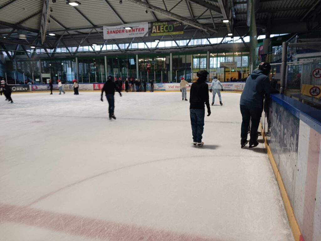 Egal ob Anfänger oder erfahrene Eisläufer, alle kamen auf ihre Kosten. Während einige noch vorsichtig ihre ersten Runden drehten und sich gegenseitig stützten, flitzten andere schon sicher über die Eisfläche. Mit Musik und bunter Beleuchtung entstand eine tolle lockere Atmosphäre. Besonders schön war zu sehen, wie sich alle gegenseitig halfen. Auch einige Lehrkräfte wagten sich aufs Eis und sorgten für gute Stimmung.